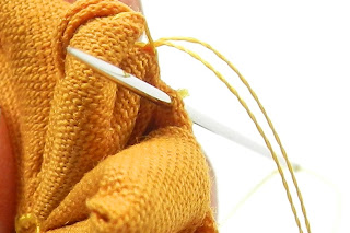 18. Place the knot with tails inside of the flower, sew it in place.